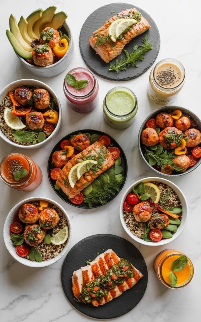 - Prep ahead: Cooking chicken, salmon, or quinoa in batches saves time and reduces stress.