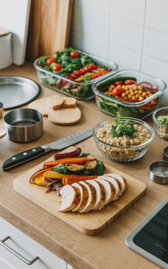 I don’t spend hours cooking. I rely on batch cooking, one-pan recipes, and simple seasoning.