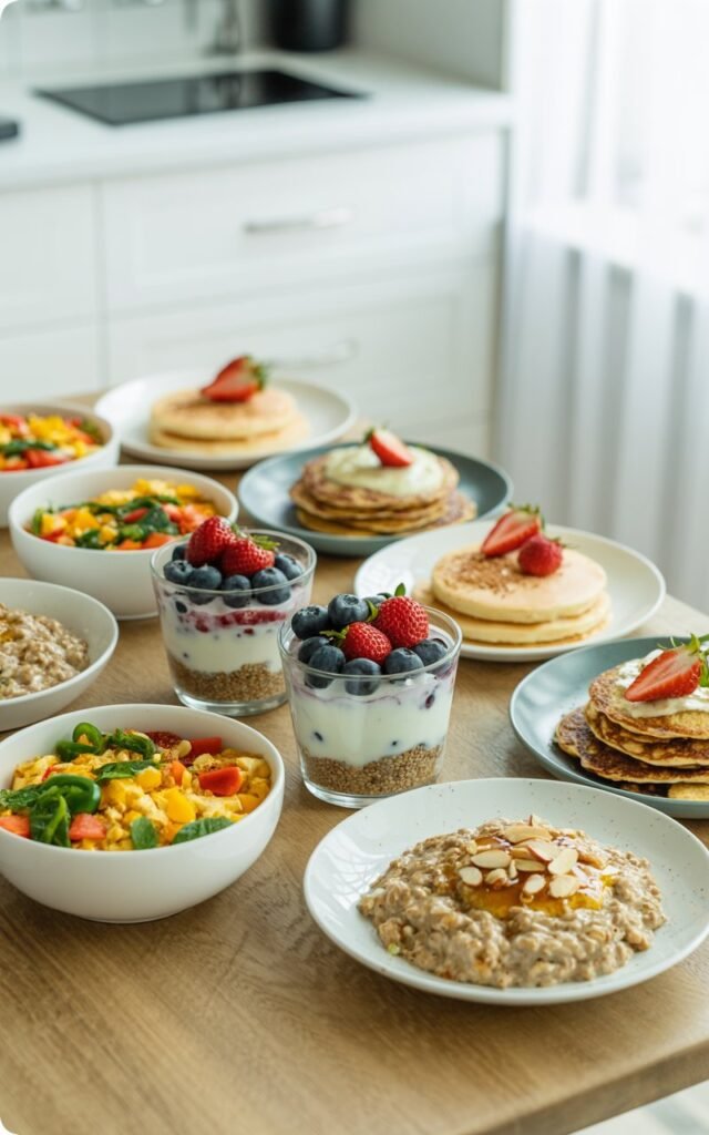 - Protein Pancakes – Using oat flour, eggs, and protein powder, I make pancakes that taste indulgent but are actually healthy. I often cook a double batch to freeze for quick mornings.