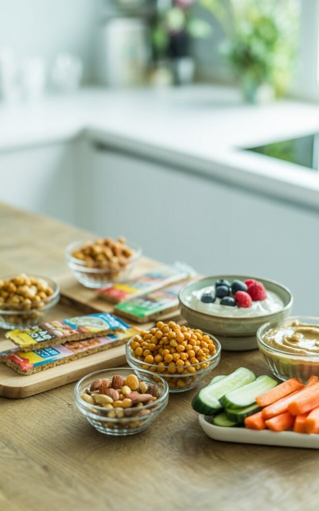 - Roasted Chickpeas – Seasoned with paprika and garlic powder, they’re crunchy, satisfying, and full of plant-based protein.