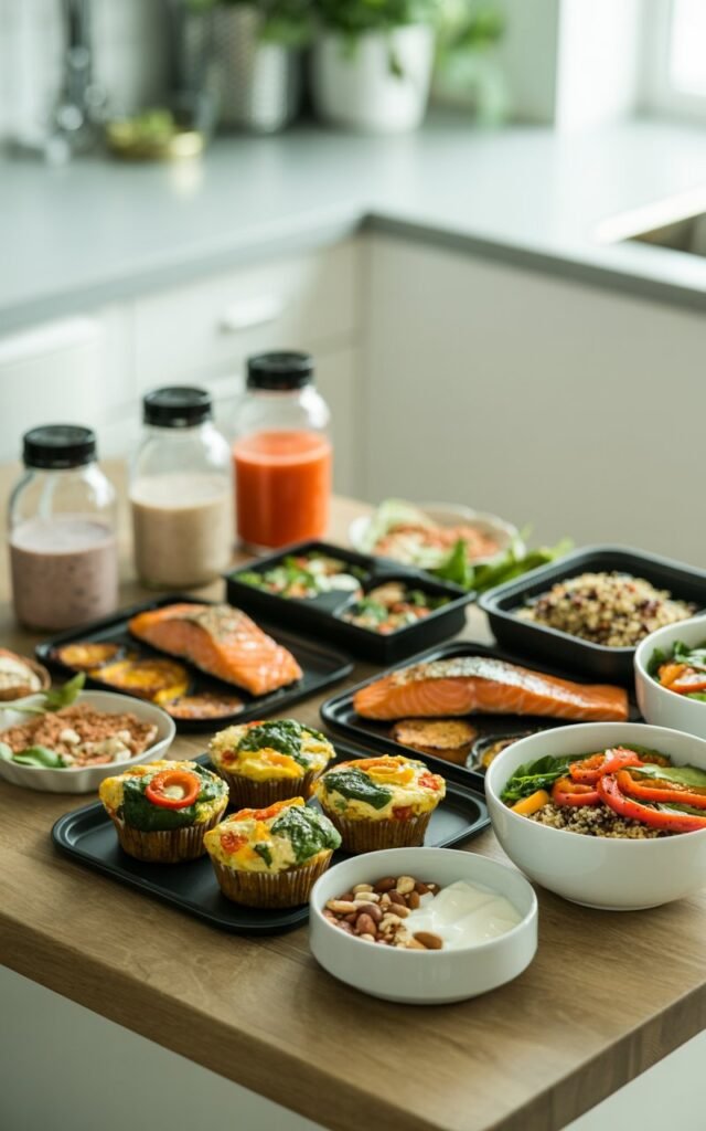 - Overnight Protein Oats – I combine oats, unsweetened almond milk, chia seeds, and a scoop of protein powder. Overnight soaking makes mornings so much easier.